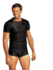 The look and feel of this black Italian Micro-Fiber Spandex mesh-look t-shirt will entice your lover to touch!