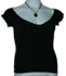 Black Off Shoulder Tee has oh so subtle gathering that enhances cleavage. With the torso at approximately 15 inches (38.10 cm) of the tiniest ribbing, you have a top that is as versatile as it is sultry.