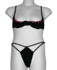 Black Satin & Red Laced Bra & Thong Set