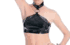 Show off what you've got in this black vinyl halter top with an O-ring attached choker collar.