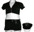 Set includes: Vinyl visored cap with badge, crop top with vinyl epulets, and the mini skirt with removable garters, vinyl belt and miniature working handcuffs, measures approximately 9 inches (22.86cm) from waist to hem.
