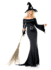 This Sultry Witch costume revolves around a slinky black gown with ragged hem and sleeves and a slight train. Remove the accessories and replace with others to create a variety of dark looks.